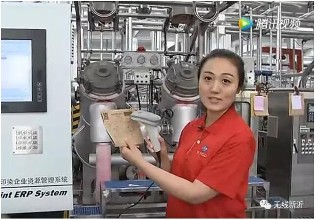 主持人:观众朋友,我手里拿的这张就是印染车间的生产流程卡,工人可以用扫码枪扫描卡上的条形码,将面料信息传输到这台管理系统的终端,使管理人员可以实时掌握面料生产的动态。