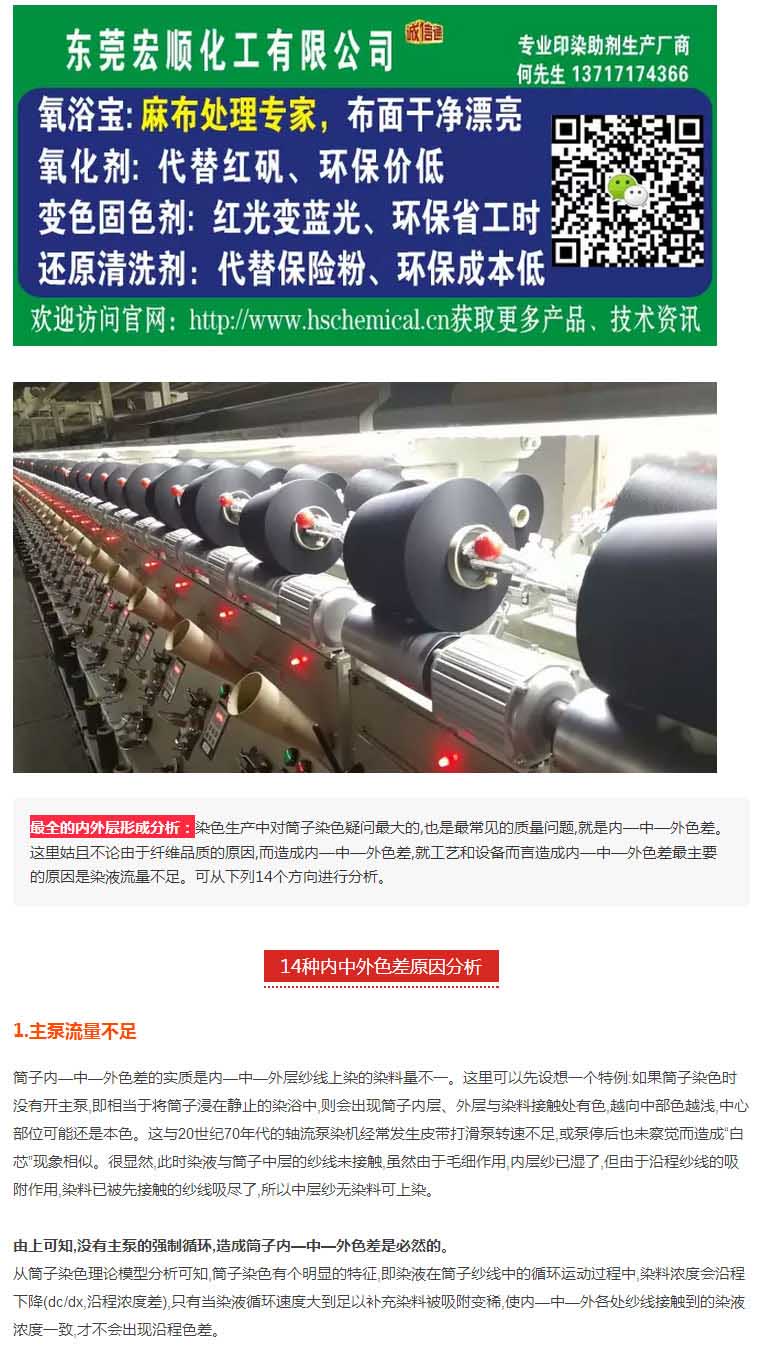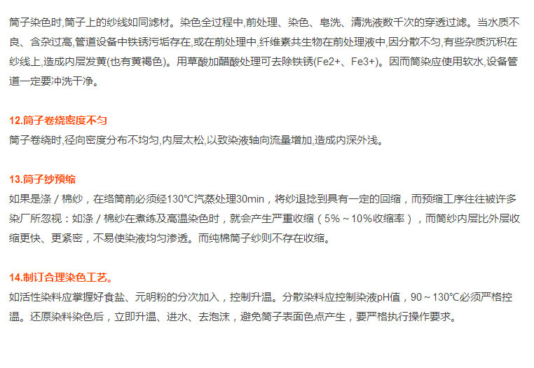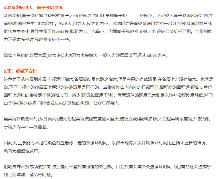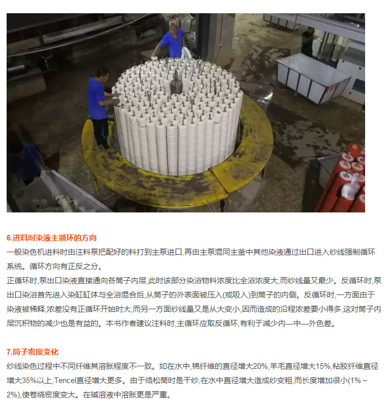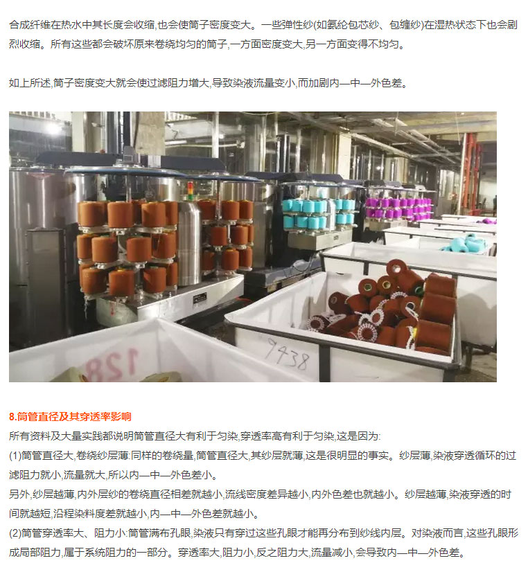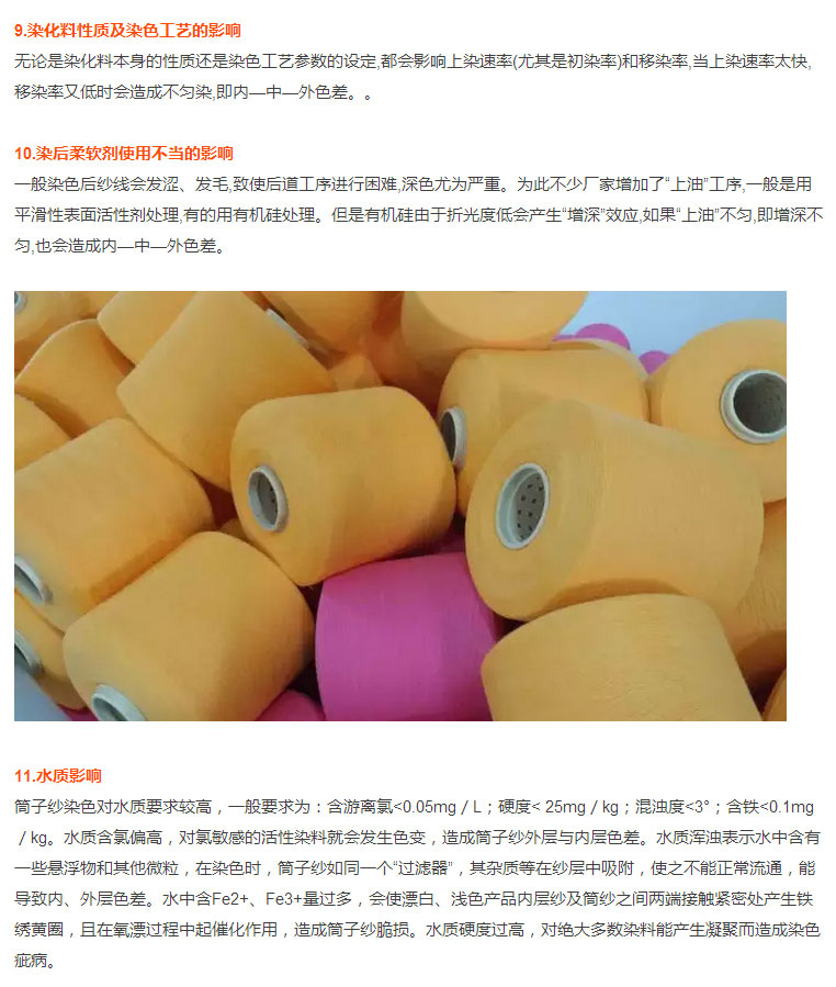 印染厂大师傅30年工作秘籍:筒子纱染色时经常出现筒子内、外层色差,原因有14个!