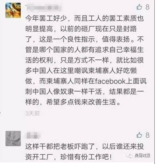 有网友表示,动不动就罢工,把老板吓跑了,以后谁还来投资开厂。