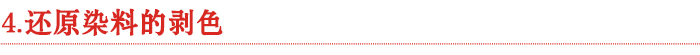 5到10毫升/升38°Bé烧碱、l到2毫升/升的热稳定性分散剂、和3到5克/升保险粉处理,外加0.5到l克/升蒽醌粉末。如有足够的保险粉和烧碱,蒽醌会使剥色液变红。如果它转变为黄色或棕色的话,必须进一步加入烧碱或保险粉。剥色后的织物应充分清洗。