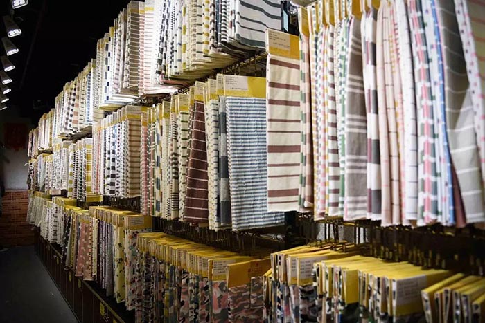 "辛苦嘛,习惯了!"我问她,女孩子做这行会不会觉得苦,她这样说。在这个几平方没有空调的小店里,摆满了各种全棉和全麻的样布。我们聊天的过程中,刚好有个女孩子来找布。