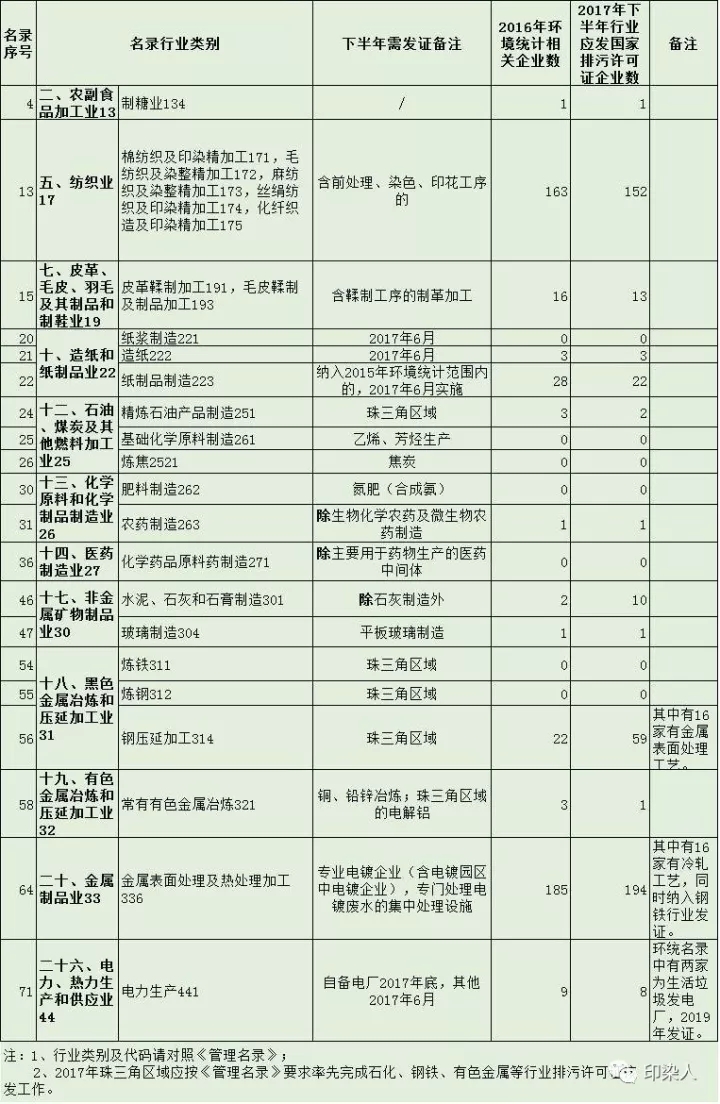 纺织印染行业2016年统计相关企业数量在163家,2017年下半年行业应放发国家排污许可证152家。
