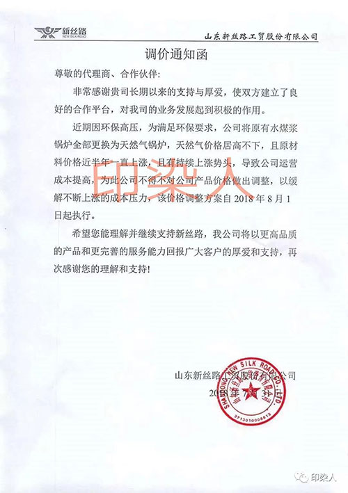 导致印染厂染费继续上调