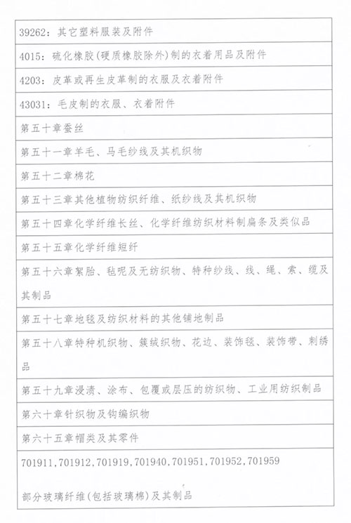 征税涉及纺织服装产品清单
