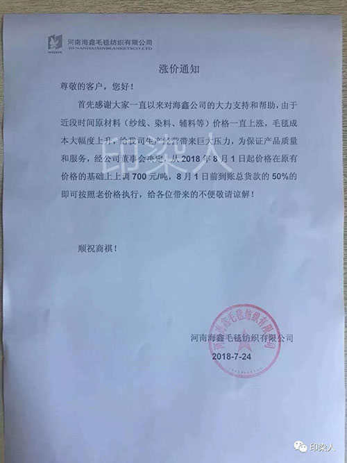 环太湖遮光布家纺商会发出通知:8月1日起,各织造企业所生产的遮光布价格上调0.5元/米!