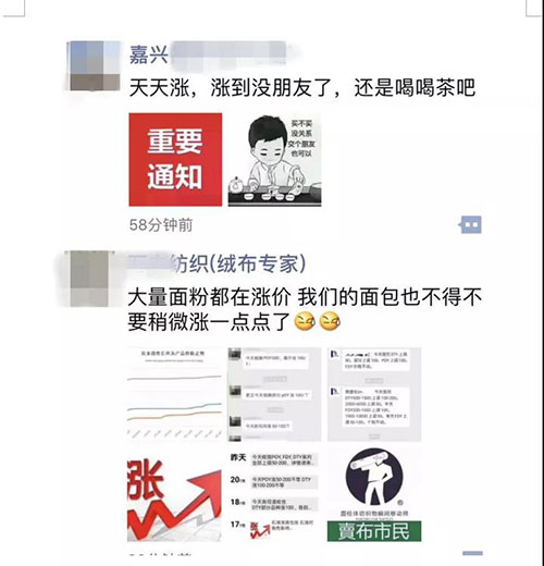 “这段时间原料涨得太厉害,我们也将报价上调,坯布涨0.10元/米,成品涨0.20元/米。”盛泽专做防寒服里面料的崔总说道。近阶段原料价格不断上涨,个别品种涨价超千元,这也导致不少的坯布厂家不堪成本重负,纷纷发出涨价通知。