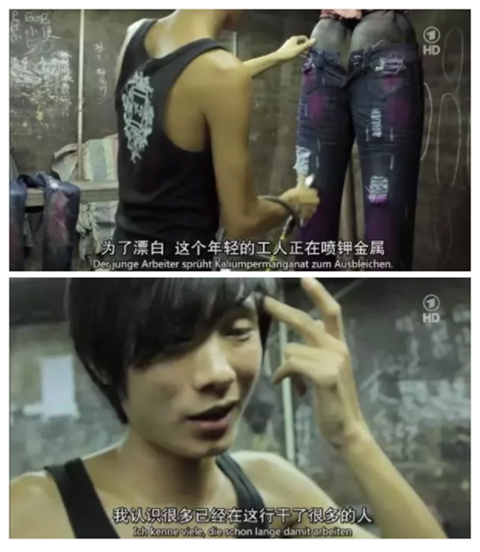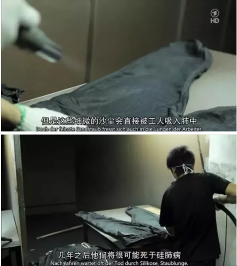 他们不是不知道,他们只是迫于生计而无法选择。比如喷砂这种在全世界范围内都已经被明令禁止列为非法的牛仔裤处理工艺,在中国的工厂里却可以明目张胆地进行。