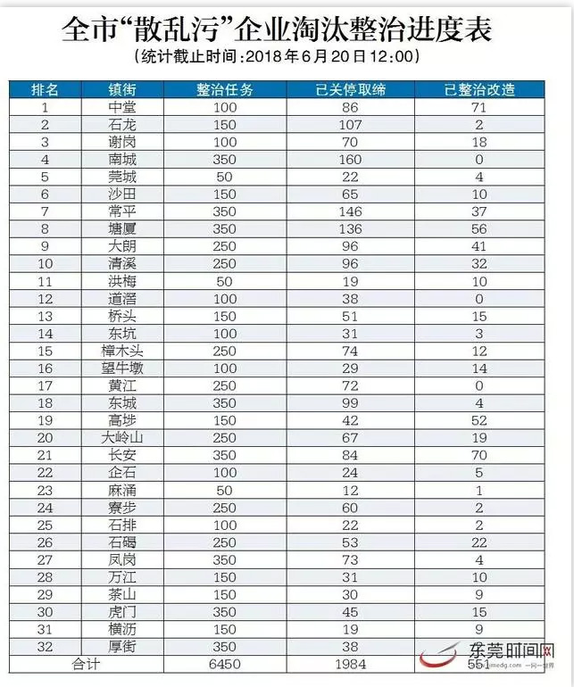 文件发布后,各镇街雷霆出击,根据东莞环保局发布的数据,截至6月20日,全市已完成2595家“散乱污”企业的淘汰整治,其中关停取缔2026家,整治改造569家!