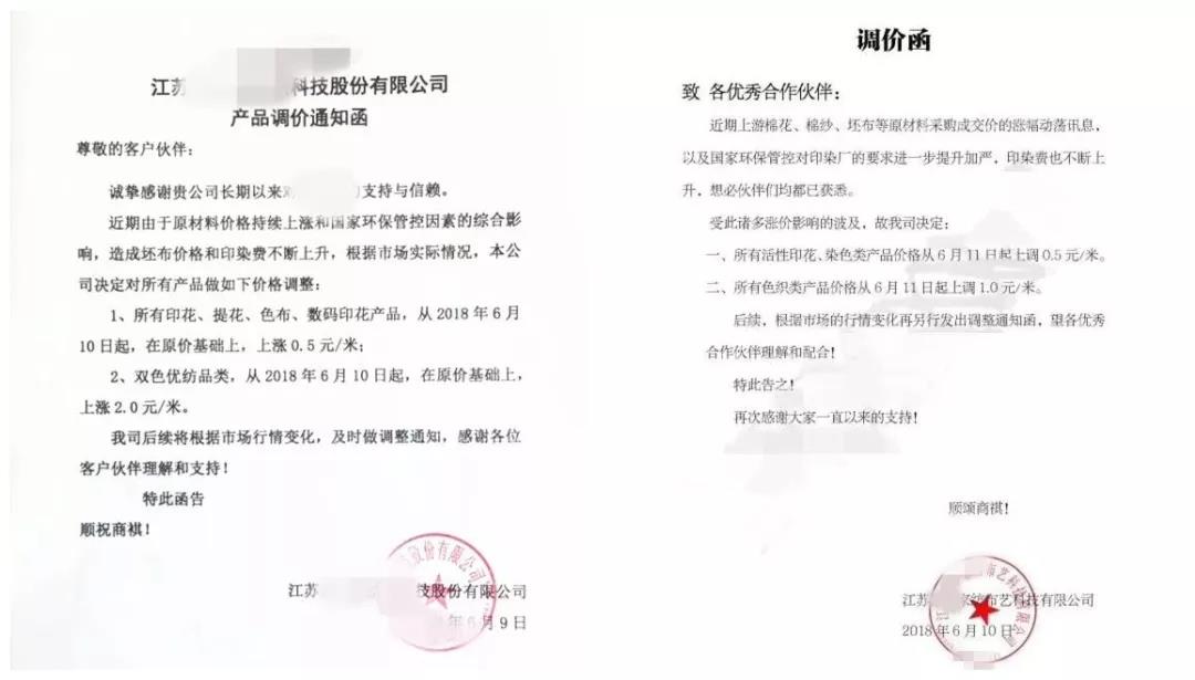 6月2日,南通7家印染企业齐发涨价通知,染费上涨0.1~0.2元/米