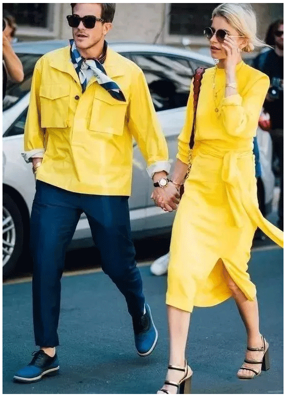 草地云雀黄明度较高,饱和度适中,也是属于色彩中偏成熟的色彩。相较于17春夏的柠檬黄冰淇淋色没有那么明亮,所以在表达上偏向温柔,冷却了最热烈的情绪。