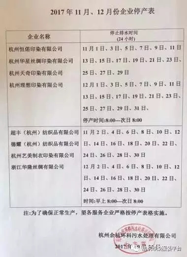 紧急通知:8家纺织印染厂(见下图名单),自11月1日起至12月30日止,分单日(1、3、5、7、9...)和双日(2、4、6、8、10...)每天轮流停产24小时!每家印染厂共计停产30天和31天!