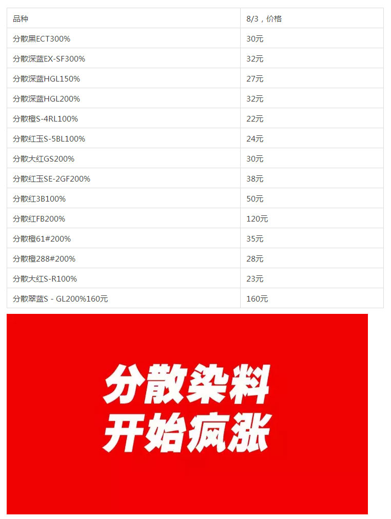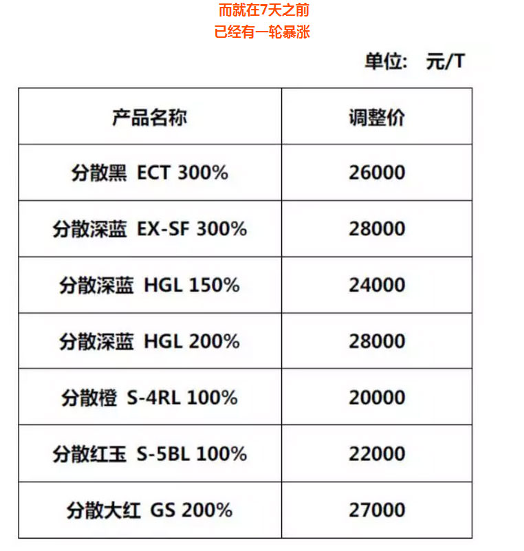 惊恐!14支分散染料开始暴涨【附明细】!而部分染料企业却开始倒下!