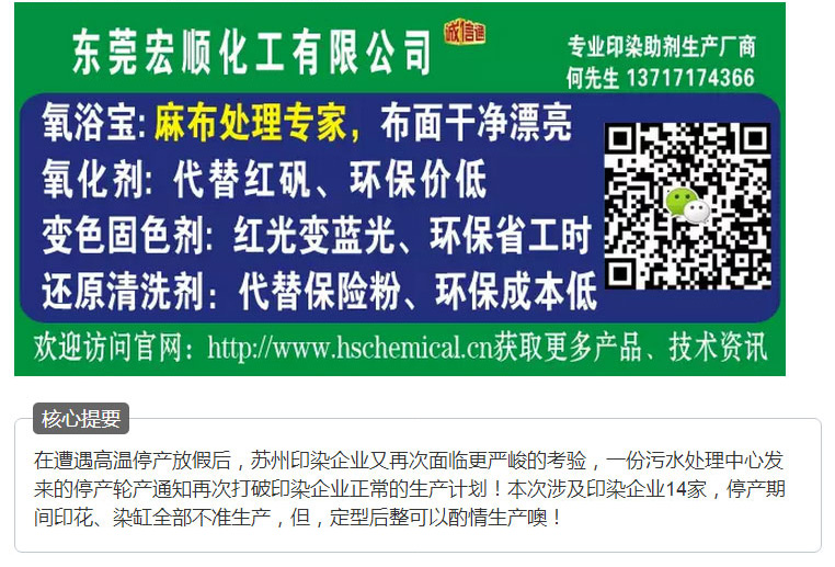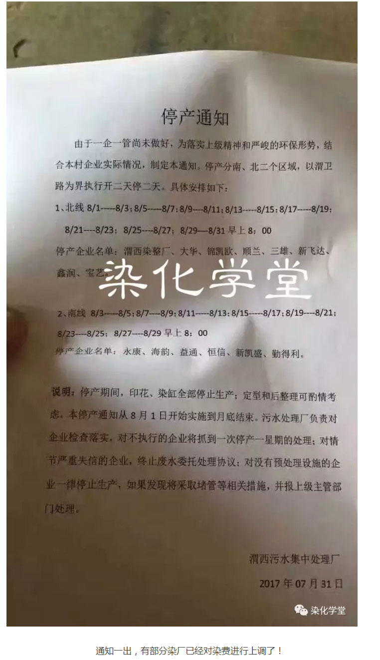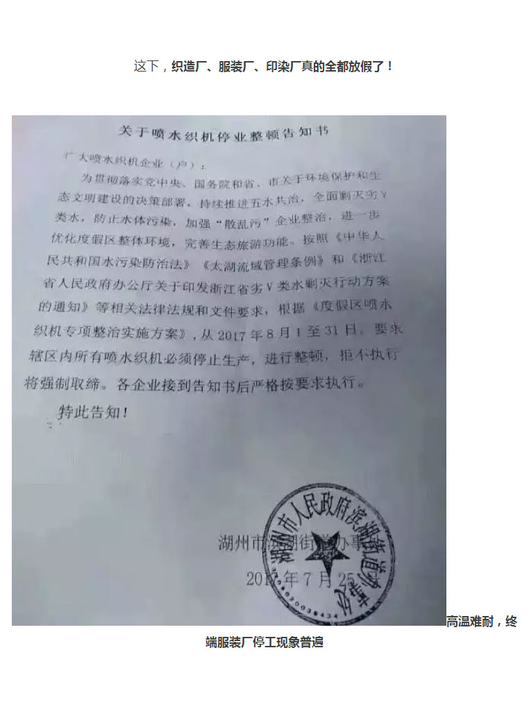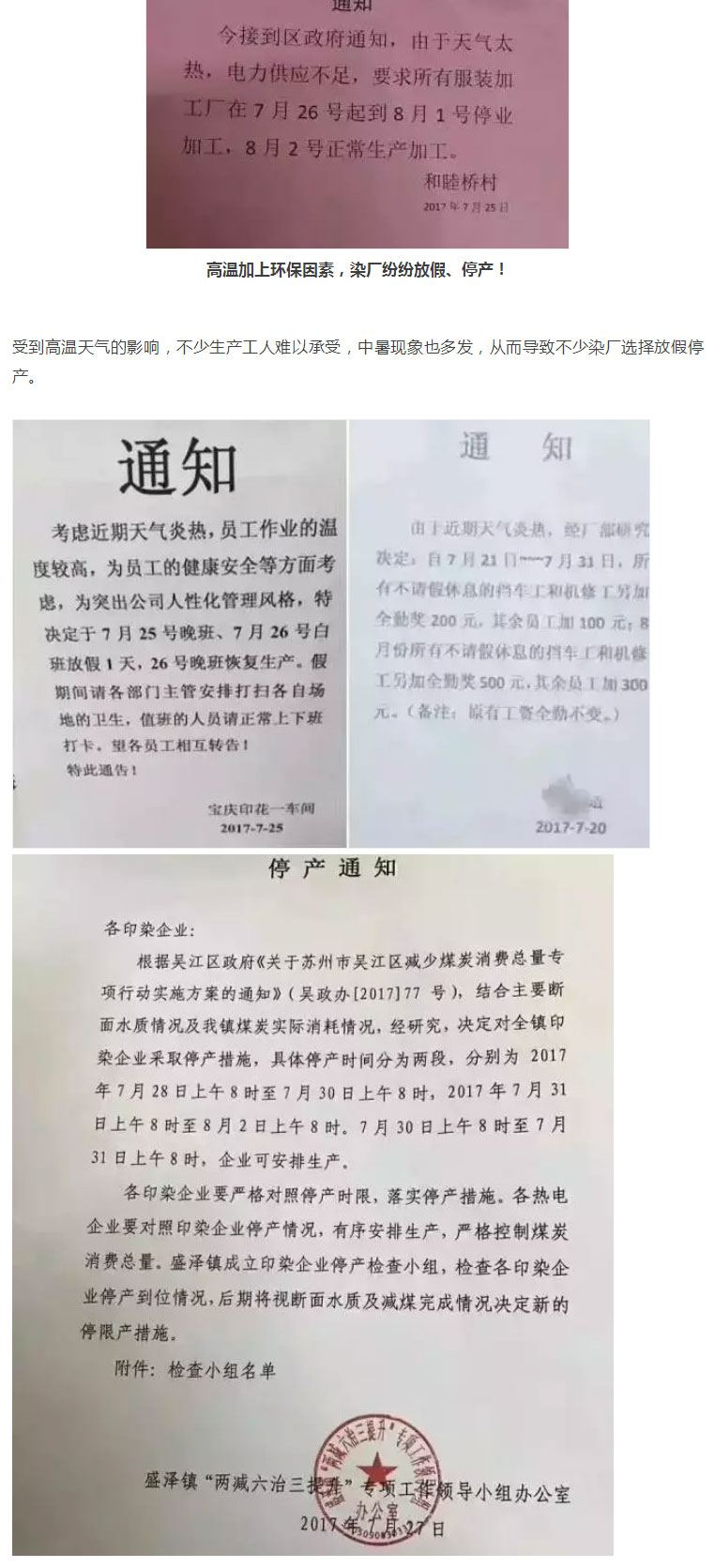 8月1日起苏州印染企业再遭遇停产(为期一个月)附名单!别再催我发货了!
