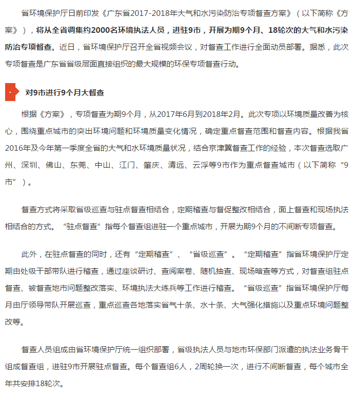 广东 | 启动省级层面最大规模的环保专项督查行动 2000环境执法者驻点9个月督查污染