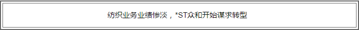 资料显示,*ST众和纺织业务利润持续下滑,并在近几年持续亏损,2016年年报显示,其纺织印染及贸易业务亏损了14,062.63万元。