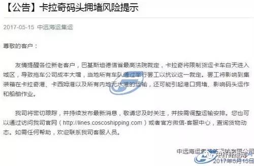 罢工从上周一5月8日开始,今天进入第八天! 已严重影响到集装箱在卡拉奇港、卡西姆港以及所有内地无水港的运输,港口拥堵完全瘫痪、码头运作和船舶作业停滞!目前,已影响到约13000个集装箱塞在卡拉奇!罢工还将继续,因为还未达成一致!
