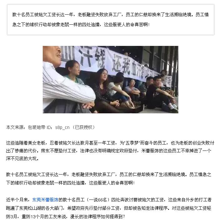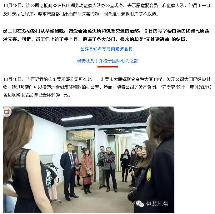 可惜,叱咤于国内时尚界的美女老板没能实现香车宝马,亿万加身的美梦,因为她遇到了三十年来最为严重的经济寒冬。尽管公司实现了2015销售跨越式增长以及企业形像升级、管理升级和品牌升级三大升级,但从2015年10月开始,公司就出现资金链紧张的局面。
