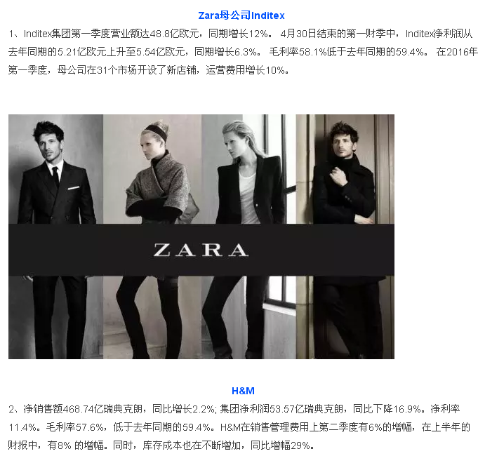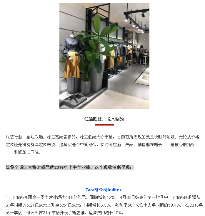 从四家主流快时尚品牌2016季度业绩上看,它们深陷行业的高度竞争,在产品同质化和品牌形象上没有多大突破。