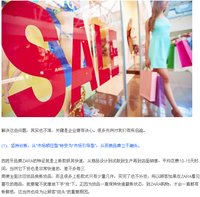 产能过剩,创新乏力,营销老化,渠道拥堵,终端饱和,——这就是今天我们服装生产环节面临的恶劣的营销环境。