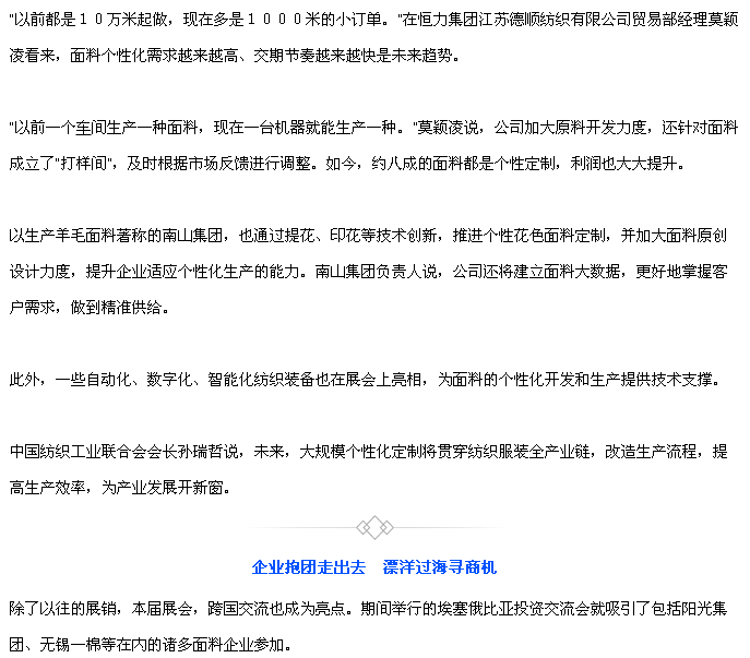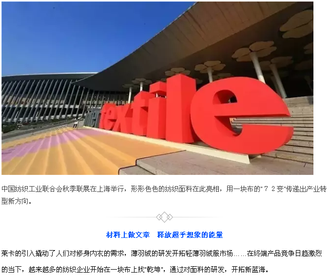 给羊毛面料“贴个膜”,就能兼顾冲锋衣的“抗造”和大衣的“挺拔”;将石墨烯提取纤维制衣,不仅抗菌透气而且更加保暖……面料革新会给纺织服装产品带来广阔的市场和发展空间。