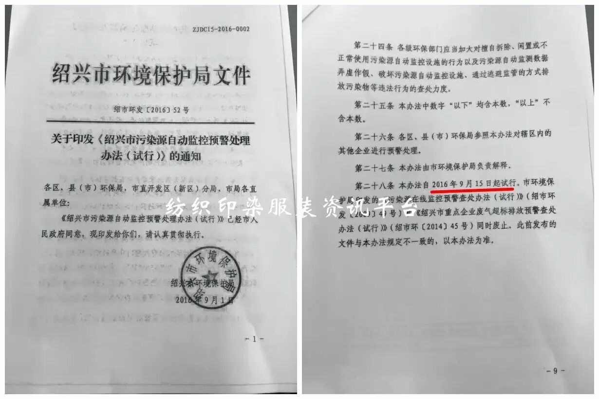 ▲ 《绍兴市污染源自动监控预警查处办法(试行)》9月15日施行