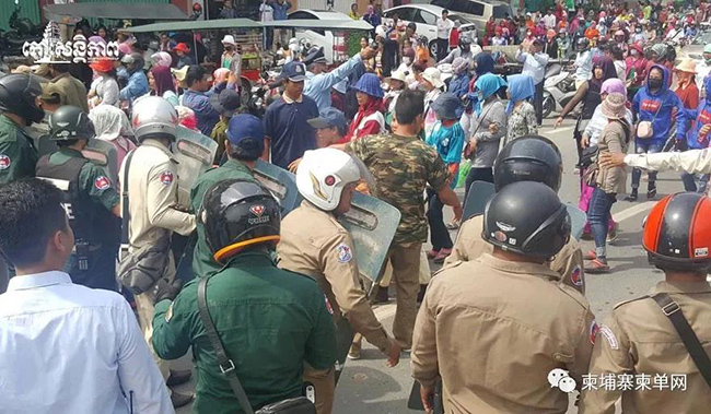 目前,金边森速区警方在路上安排警力,阻止工人继续前进,然而工人依然坚持,双方僵持不下。与警力发生肢体冲突,但目前还没有发生暴力或有人受伤的报告。