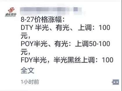 织造企业停产涨价的“罪魁祸首”还是一天一个价格的涤纶长丝。近日,涤纶长丝依旧大幅拉涨。