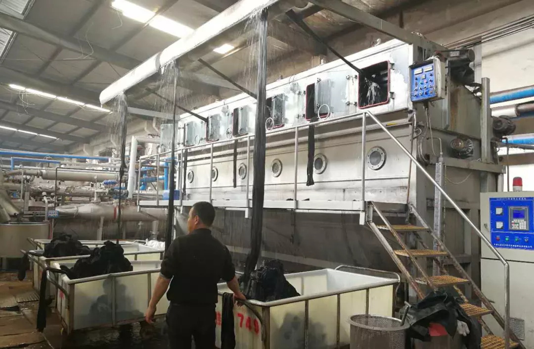 毛线及毛织物因原毛已经精练,只 是为了再除去纺织时所加的滑润油及制造时沾著的污迹而已,手续远较精练 原毛简易。通常用织物重的2~4%纯碱及1~3%肥皂,温度35~40℃。