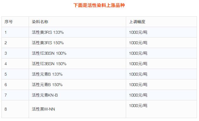 紧急!活性染料价格上调1000元吨【见价格表】,不用惊讶,后续还要涨!
