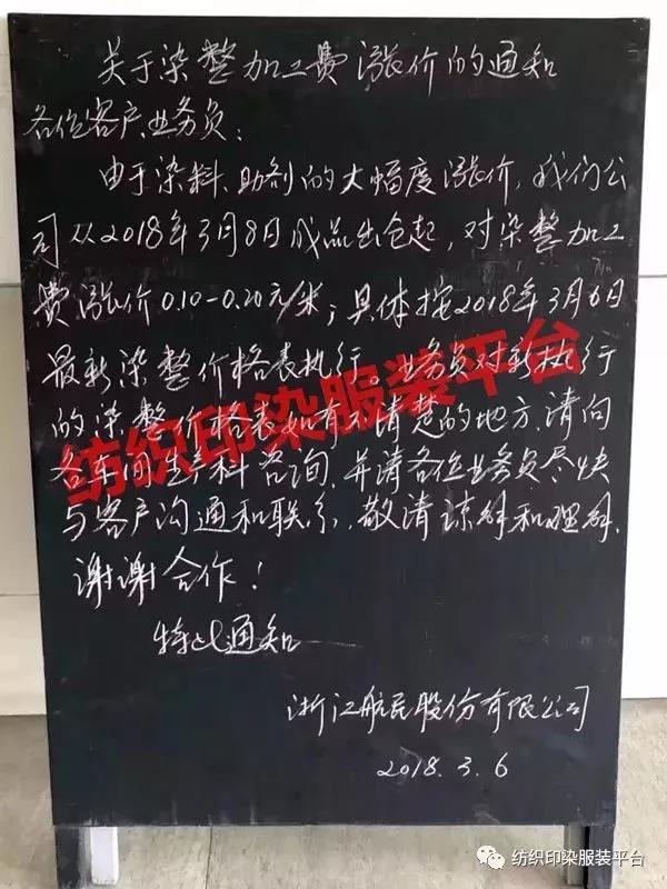 那一定是漫天飞的染费涨价单
