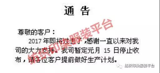 1月15日:停止收坯(200KG以下);1月26日:停止收坯(200KG以上);1月21日所排的坯布将无法保证交货期