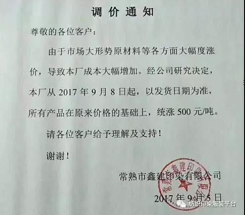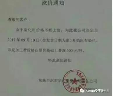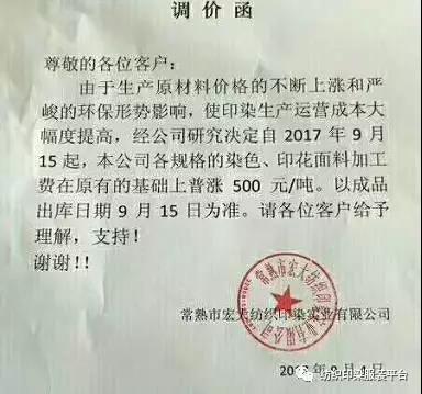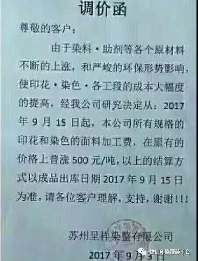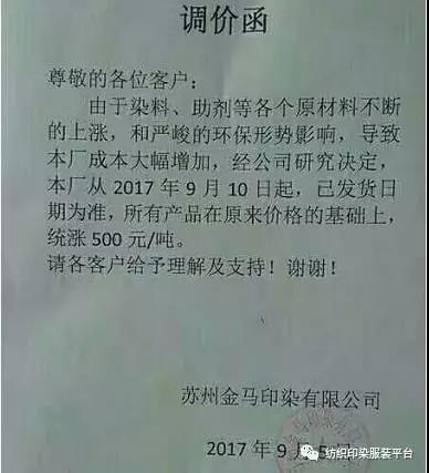10多家印染厂统一涨500元,难道是开会说好的?