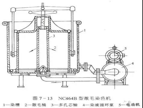 散纤维染色机最初用于羊毛的染色,称为散毛染色机,至今仍有应用,通常把散毛染色机作为此类染色机的代表。