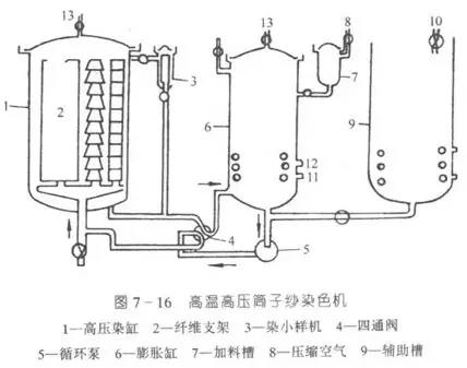 高温染纱机,染后经轴纱可直接或再经过一定处理后用于织造,比绞纱染色的工序要简化得多。