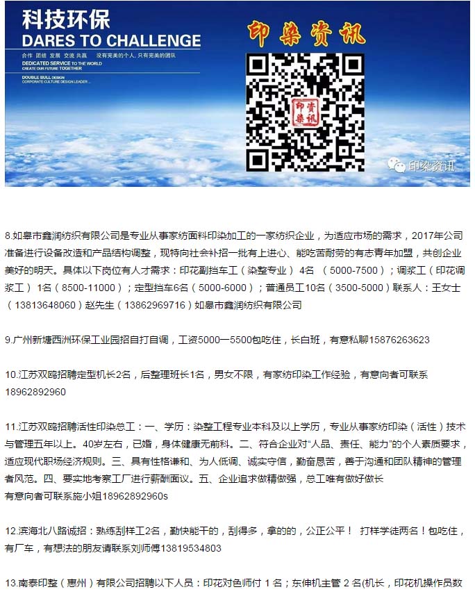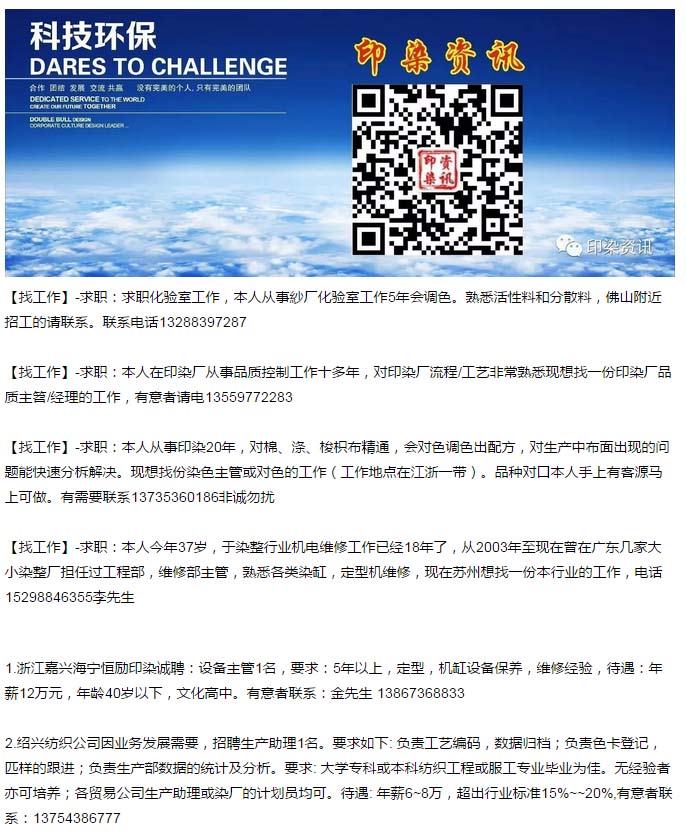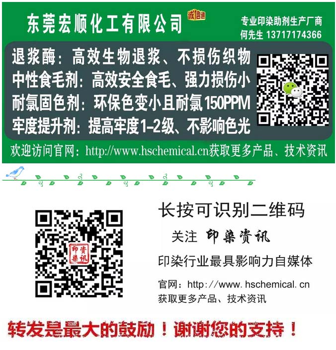 更多精彩内容,微信添加公众号:yrzx518或点击下方“印染资讯”长按二维码识别即可关注它!