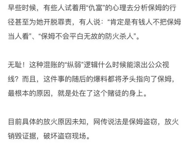 事件发生后,保姆在独自逃出火海时还佯装镇定的配合着警方的调查。
