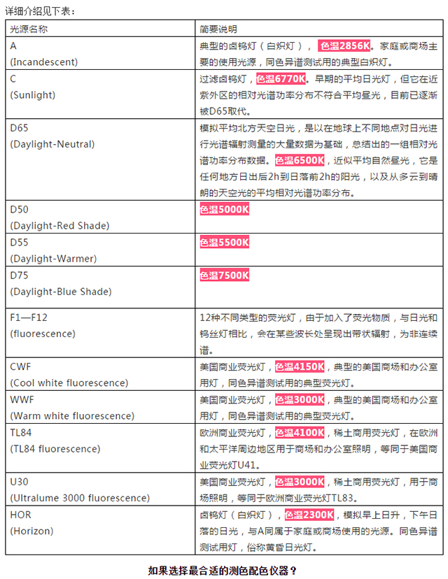 CWF,WWF,TL84,U30,HOR国际上经常使用的商业光源。