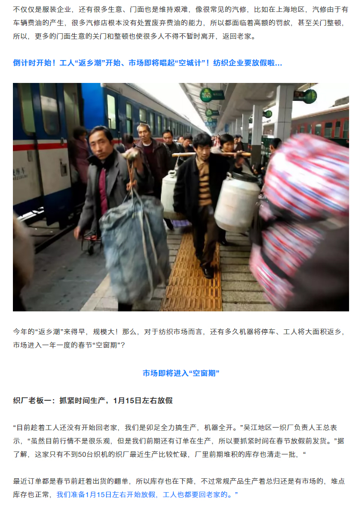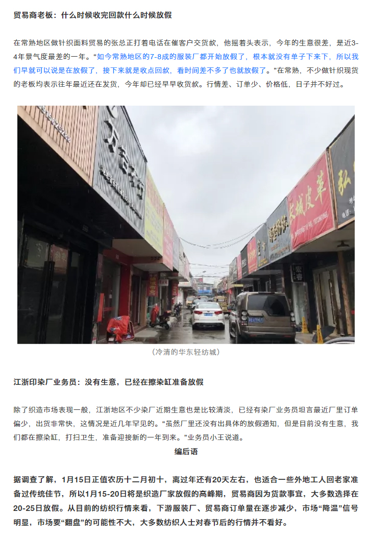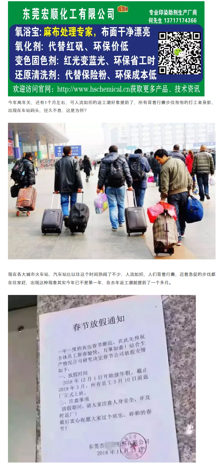 1月初就开始放年假!纺织、印染、制衣厂伤不起!