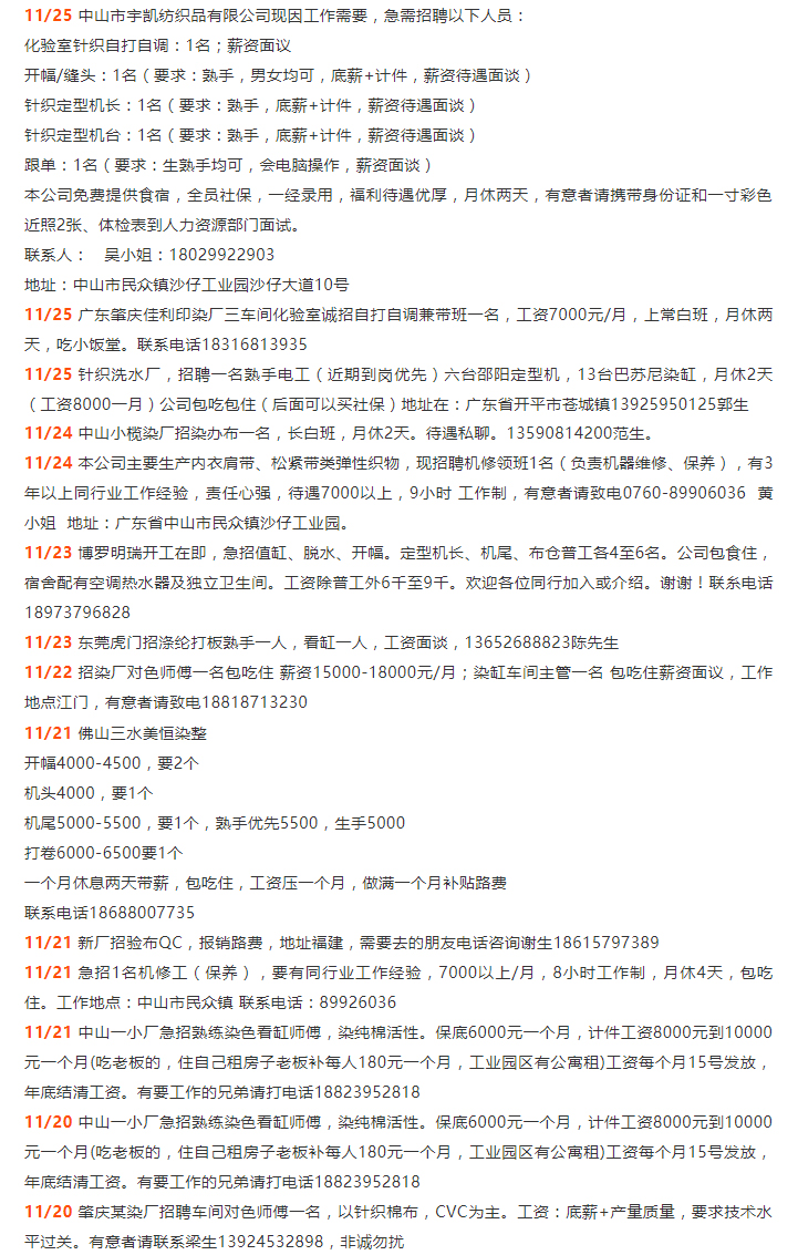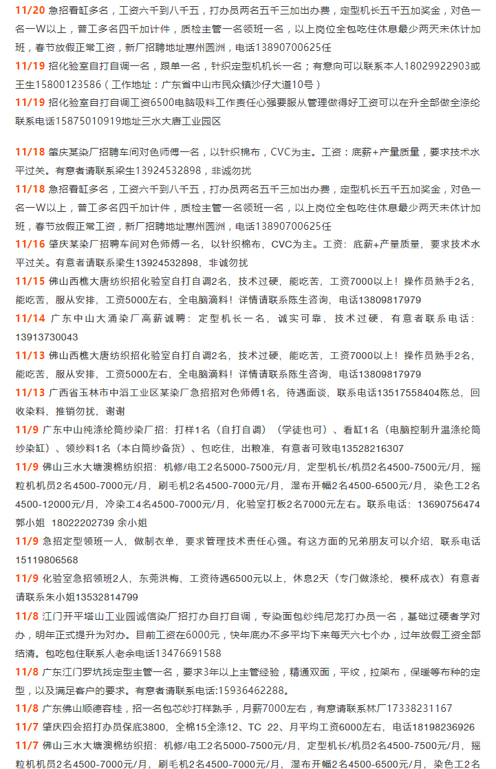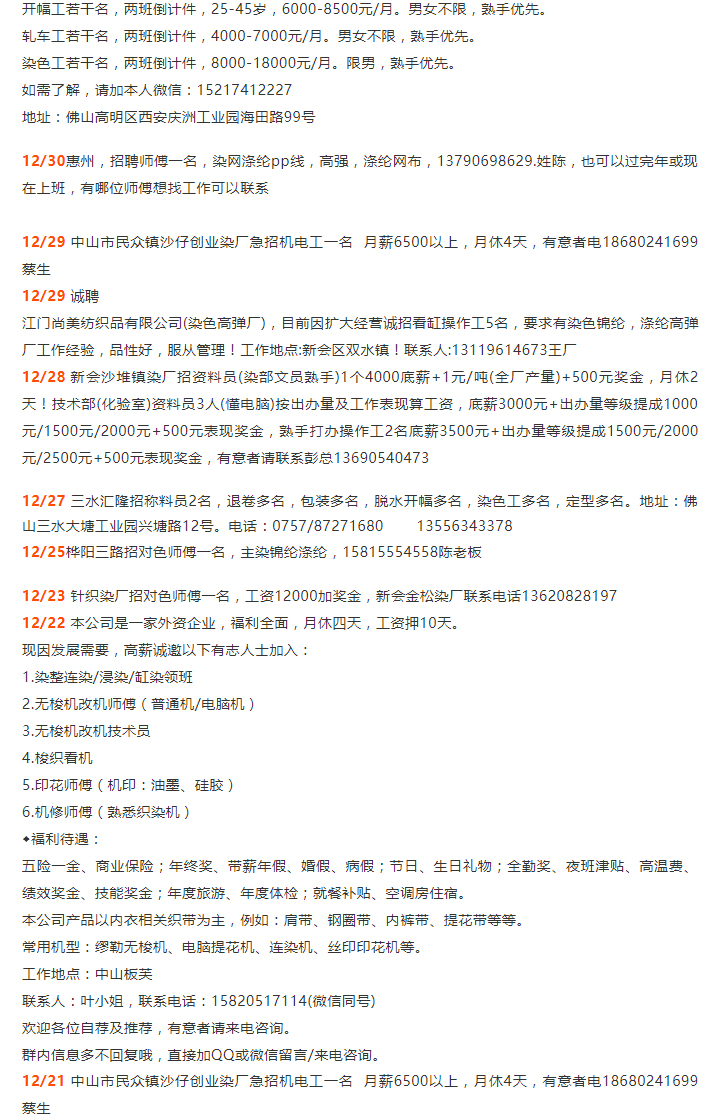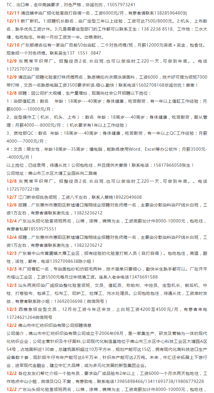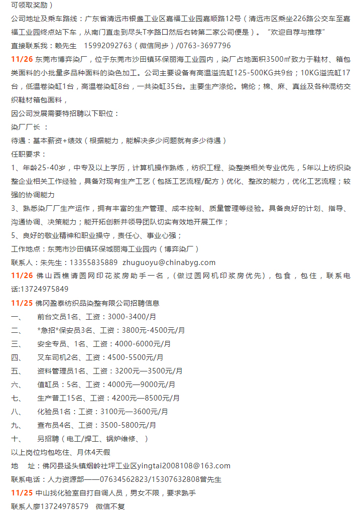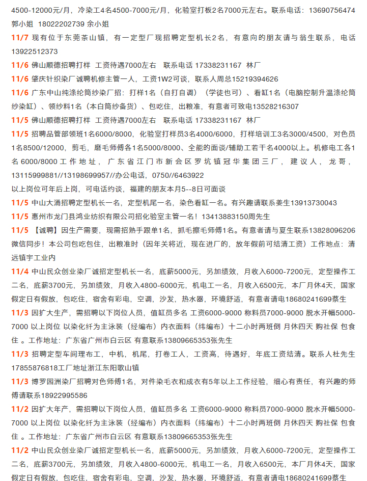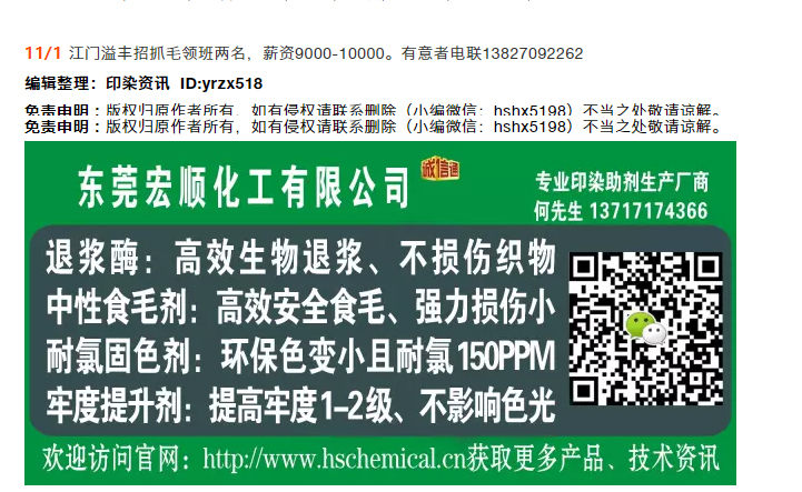 印染招聘专刊丨承租染厂车间,华粤印织染、金丰染整