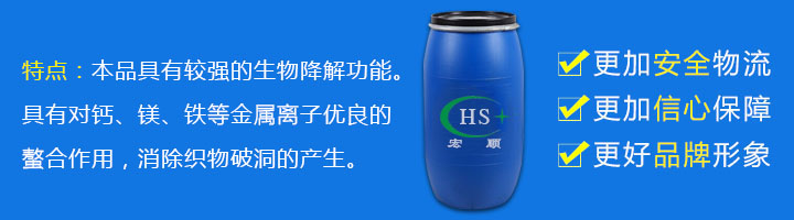1、本品具有较强的生物降解功能。 2、具有对钙、镁、铁等金属离子优良的螯合作用,消除织物破洞的产生。 3、处理的织物表面光滑、白度好、毛效高。 4、工作液碱性低,织物降强小,前处理废水接近中性,COD较低。 5、节约水、电、汽,综合成本降低明显。【使用方法】