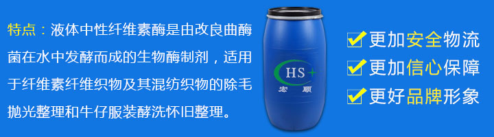 液体中性纤维素酶是由改良曲酶菌在水中发酵而成的生物酶制剂,适用于纤维素纤维织物及其混纺织物的除毛抛光整理和牛仔服装酵洗怀旧整理,可有效去除布面裸露绒毛,使织物表面平整光洁;使用过程中染料回染低,织物更光泽,颜色更鲜亮,还可避免酸性纤维素对织物的强力损失的问题。【产品性状】