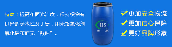 1、提高布面光洁度,保持织物有良好的亲水性及手感; 2、用无铬氧化剂氧化后布面无“酸味”; 3、氧化工艺易控制,不会造成过度氧化; 4、保持与红矾氧化相当的色牢度。【使用方法】