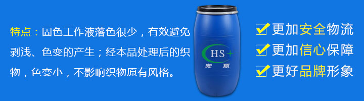 1、固色工作液落色很少,有效避免剥浅、色变的产生; 2、经本品处理后的织物,色变小,不影响织物原有风格; 3、经处理后的织物,摩擦牢度、皂洗牢度、汗渍牢度等显著改善; 4、不含甲醛,符合环保性能;【使用方法】