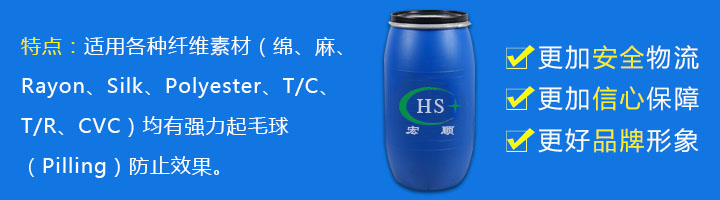 1、适用各种纤维素材(绵、麻、Rayon、Silk、Polyester、T/C、T/R、CVC)均有强力起毛球(Pilling)防止效果。 2、不使织物手感变粗硬,反而能产生良好之反拨弹性及丰厚手感。 3、对白色织物或鲜艳色布无黄变或变色的缺点。另对现场车间之机械作业安定性均极为优异,也无药性凝集(Gum-UP)之担心现象。 4、处理时水份将有蒸发倾向而形成强固之树脂皮膜,特别不需热(Baking)处理。 5、不含甲醛、不含APEO等有害物质,不影响人体健康。 6、水性抗起毛起球剂在使用中不需另加催化剂,不需如市场其它产品需要高温焙烘,大大降低能源消耗,节省了工艺时间,同时避免对加工品的损伤。【使用方法】