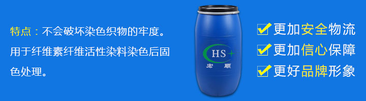 1、本品不含甲醛及APEO,属于环保型产品,符合欧盟OEKO-TEX Standard 100的要求; 2、用于纤维素纤维染色后固色处理;能极大提高湿摩擦牢度的效果,可提高1~1.5级,达到3级以上; 3、使用方便,直接用水开稀使用; 4、织物手感柔软、对色光、日光牢度无影响。【使用方法】