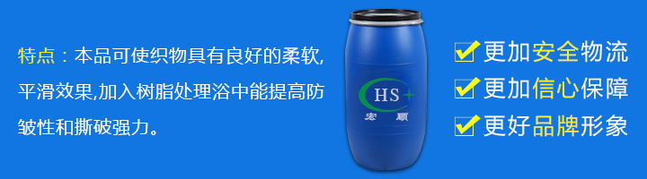 本品可使织物具有良好的柔软,平滑效果,加入树脂处理浴中能提高防皱性和撕破强力,保护纤维,减小强力损失。【使用方法】