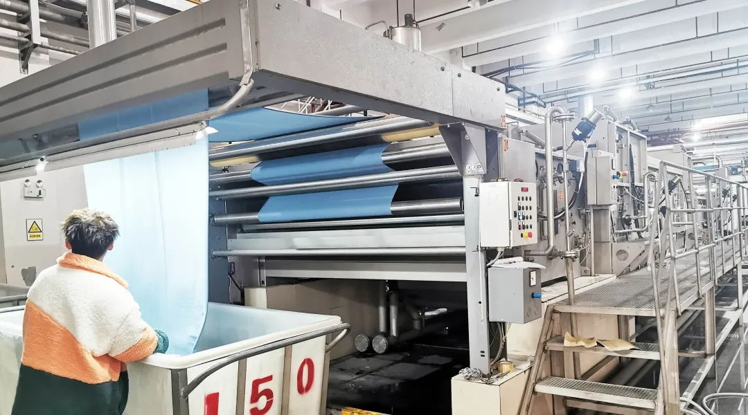(2)在轧染生产中为防止泳移现象的发生,一方面根据纤维吸湿性控制合适的轧余率(不能太高);另一方面可在染液中加入适量防泳移剂,采取适当的烘干方式。