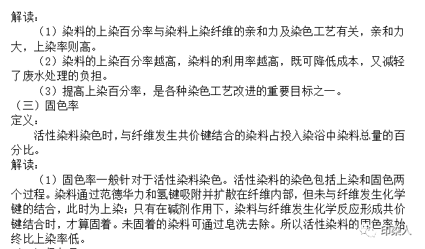 (4)染料直接性的大小通常用染料平衡上染百分效率表示,平衡上染百分率越大,表示染料的直接性越大。