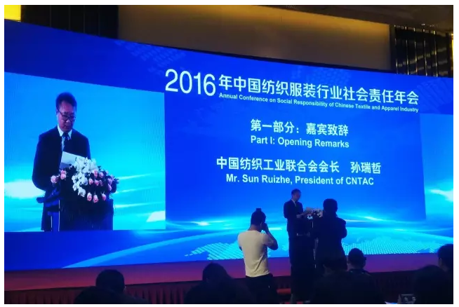 他说,中国纺织服装行业社会责任管理体系 CSC9000T(2015 年版)还正在完善中,会在2017年开始全面开放CSC9000T及其在线工具,在服装、家纺、印染等行业应用。于今年7月启动的纺织供应链化学品管理创新2020行动也是今后行业社会责任工作的重点之一,产业集群的可持续发展服务体系建设是行业内以产业集群为核心的重点项目。体系是以社会责任价值为导向,产业大数据为引擎,形成“一个平台、两个基地、三个层面”的工作格局,为区域可持续发展治理提供决策建议。而已经启动的“在中国‘一带一路’战略下中国纺织行业投资的责任与挑战”研究项目也在有序进行中,这个项目会制定中国纺织服装企业海外投资的社会责任方面引导规范,帮助企业提升海外社会责任风险管控能力,从而强化中国纺织服装企业在当地的责任竞争力和可持续发展力,提升行业发展的软实力和国际贸易话语权。