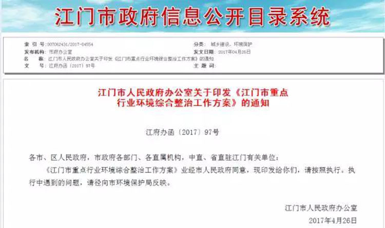 江门市重点行业环境综合整治工作方案